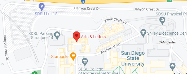 The International Affairs Associate Vice President's Office is located in College of Arts & Letters 173, the north side of campus, north-east of Viejas Arena, on the corner of Shop Terrace and Avenue of Art. The nearest parking is Parking 14 located in Aztec Cir Dr Garage.